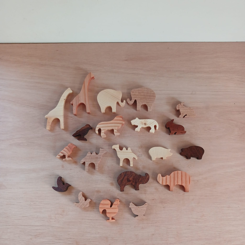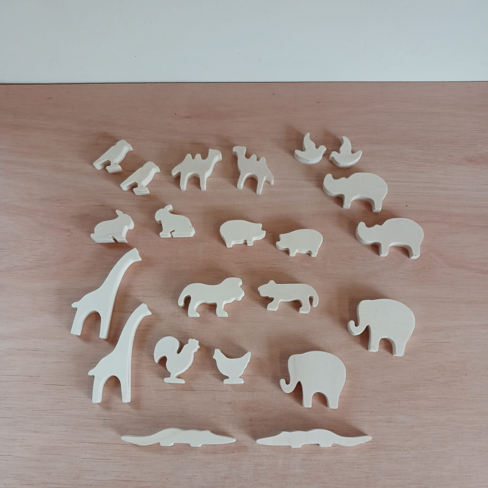 De dieren zijn tussen de 3 en 8 cm groot, en 12 mm dik. Ze kunen goed zelfstandig staan. Op de laatste foto staan de dieren in verschillende soorten hout, die kunnen als optie gekozen worden in plaats van de gewone houten dieren, klik hiervoor de extra optie aan. Dan krijg je de gewone houten dieren niet.