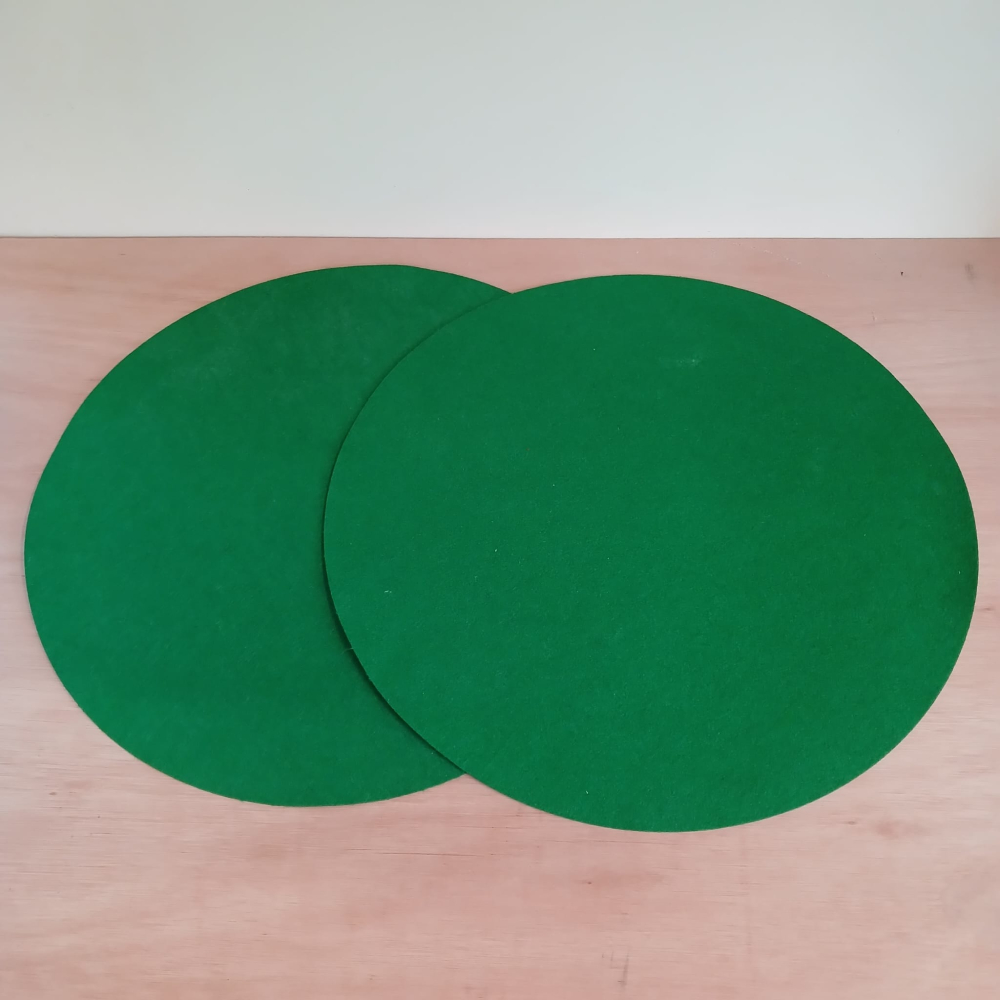 2 ronde groene vilten cirkels, diameter 40 cm