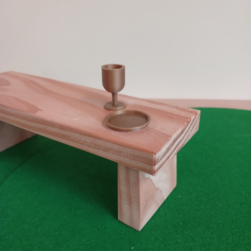 1 tafel met een goedkleurige kelk en een goudkleurig bord