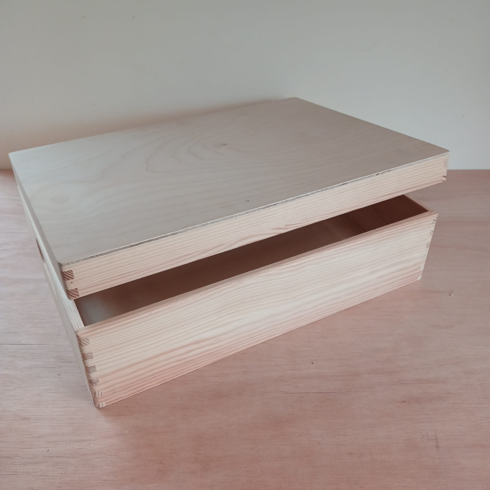 Bijpassende houten kist, 30 cm bij 40 cm, 14 cm hoog.